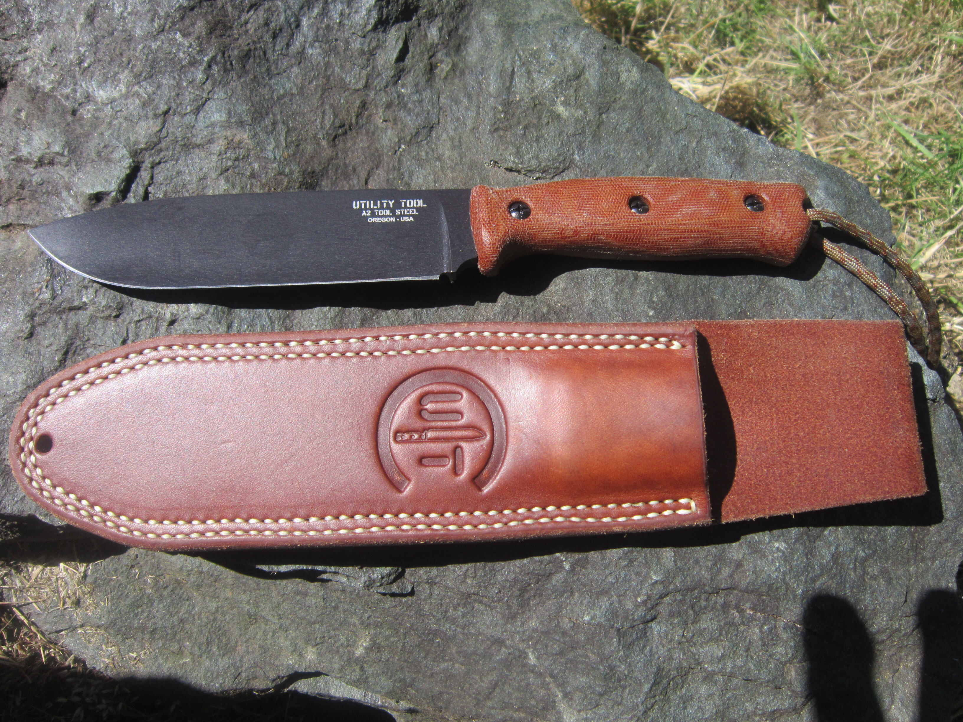 The spline of the blade shows: UTC (Utility Tool & Knife), USA made, Alan Warren blade grind, 1095 steel, 2012, prototype #4.